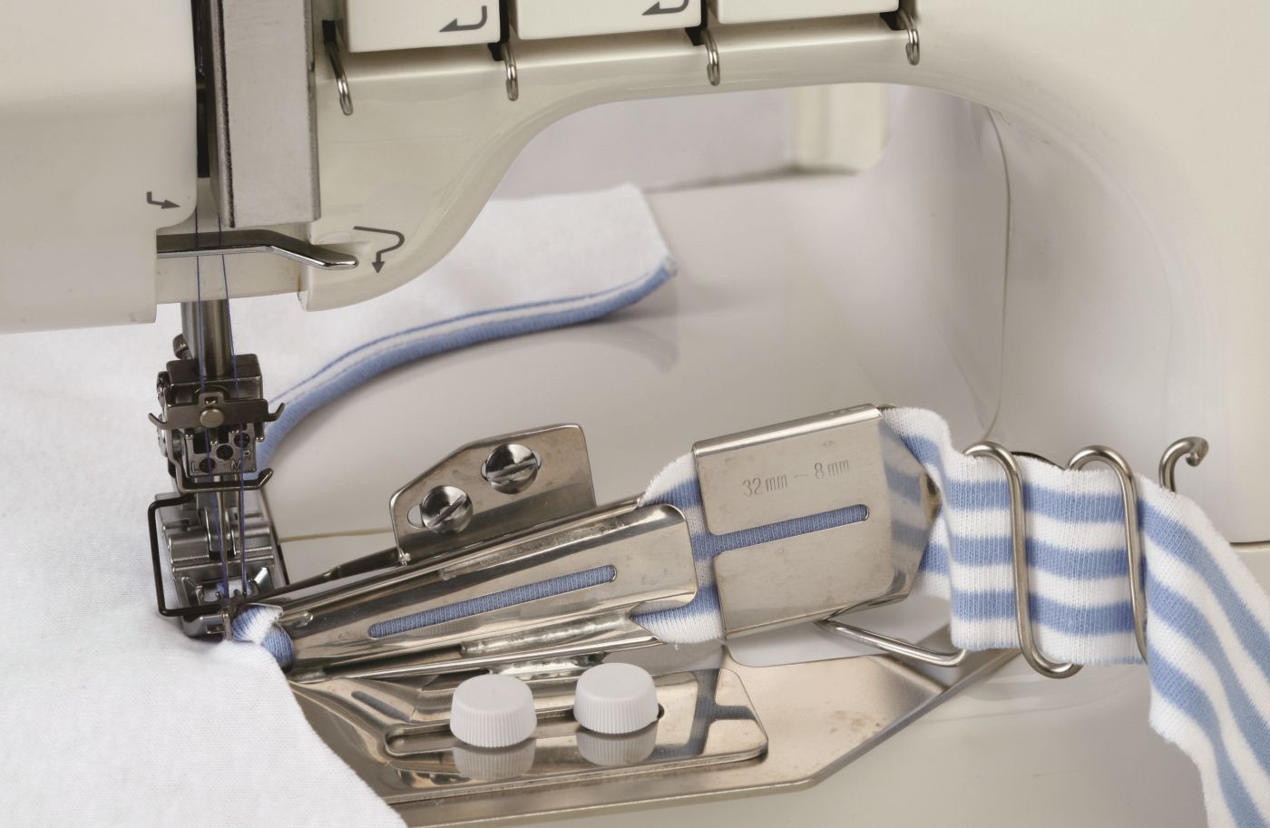 Die Führung faltet den Stoffstreifen, den Sie als Schrägband für den Stoff verwenden möchten, auf beiden Seiten um und fasst die Kanten des Nähprojekts ein. Es ermöglicht, perfekt fertige Halsausschnitte mit einem Schrägband einzufassenn und jede Kante mit einem professionellen Abschluss zu versehen